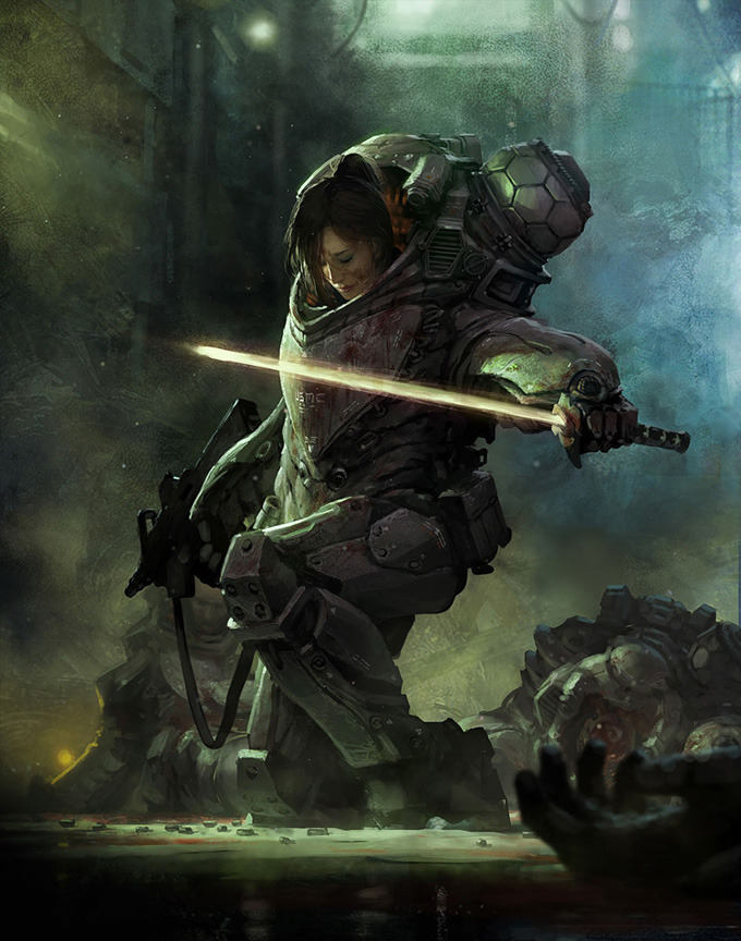 Wow! This illustration is awesome! It kinds of reminds me of Metroid, but upgraded to the MAX! Click on the amazing image to see more work by Marek Okoń.