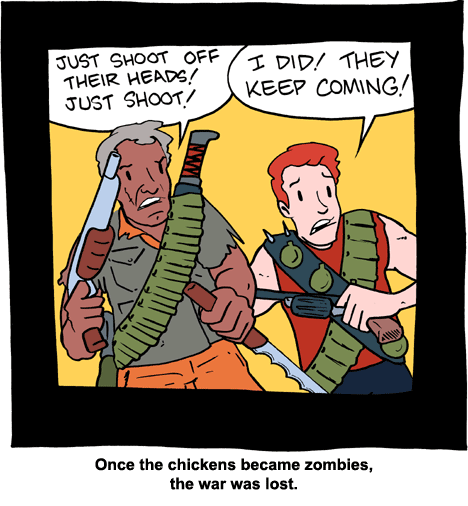 Posted byJustinRampageAugust 26, 2009February 14, 2022Posted inUncategorized Oh no! Not the chicken zombies by Zach Weiner! Is there a way to stop them? Related