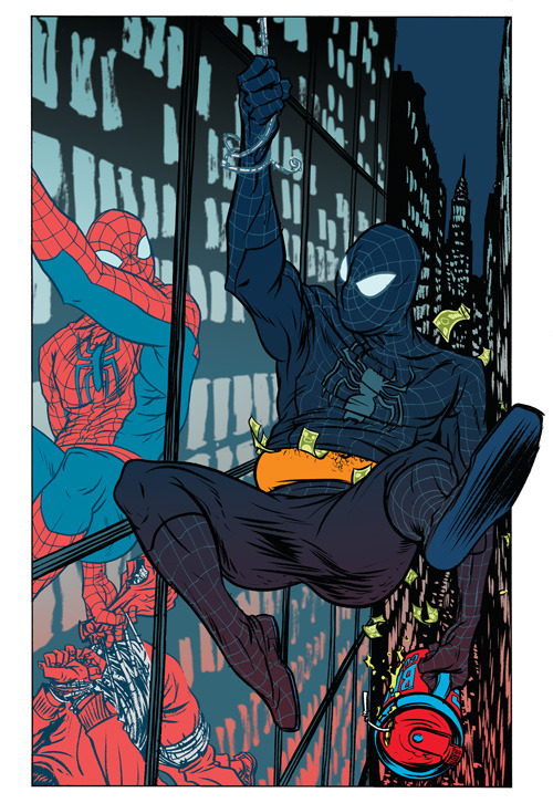 I had to share another Nathan Fox piece Sides of Spiderman. I love how the criminal is switched out with a Big Gulp in the reflection. ha ha!