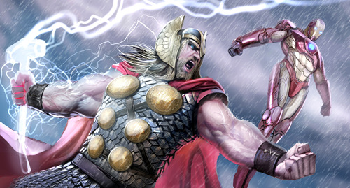 Thor and Ironman getting ready to thump some heads! They could also be angry about the weather that they are encountering… You be the judge…