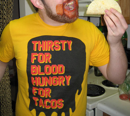 Go buy @davidSEIBEI’s “Thirsty for blood, hungry for tacos” t-shirt! It’s $12 and only available for a limited time! GO GO GO!