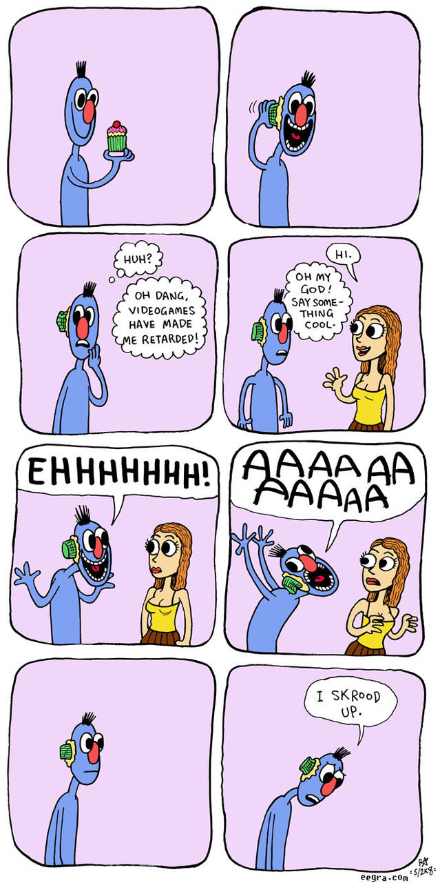 I got a good laugh from this I Skrood Up comic by Patrick Alexander (Eegra). It reminds me of a good friend of mine. Goofy bastard!