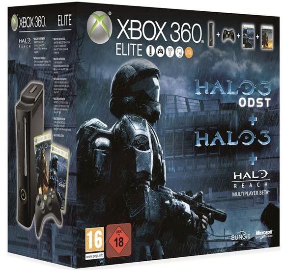 Halo: ODST and Halo: Reach will have their own “Bundled” deal with a new Xbox 360 elite console. There is no cool design work on the console like on the Call of Duty: Modern Warfare 2 bundle, but a piece of construction paper, scissors and a can of spray paint can change that lickity split!