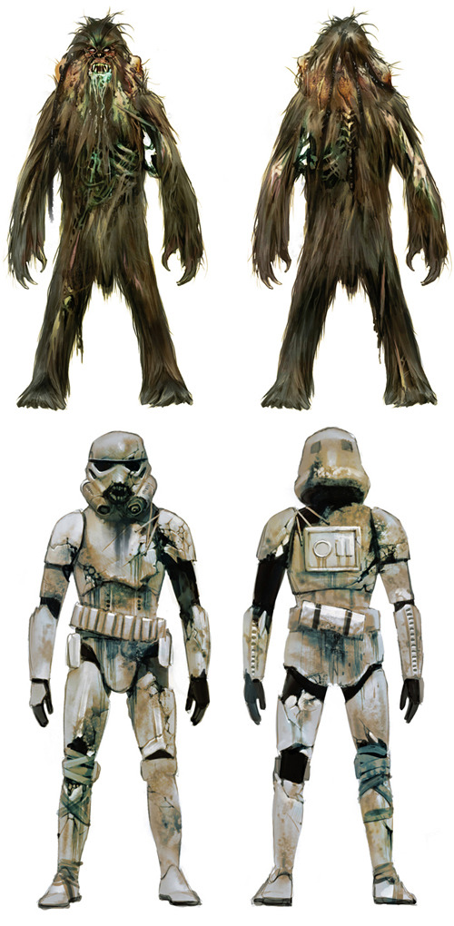 I’m loving this concept art for the upcoming Star Wars Galaxies zombie addon. Zombie Chewie looks like a nice enough fella!