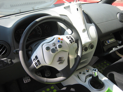 I can honestly say that my life expectancy would drop 99.9% if my car was decked out like this. I would be upside down in a creek playing games until the ambulance came to drag me out with the jaws of life. This mod looks pretty rad though. 🙂