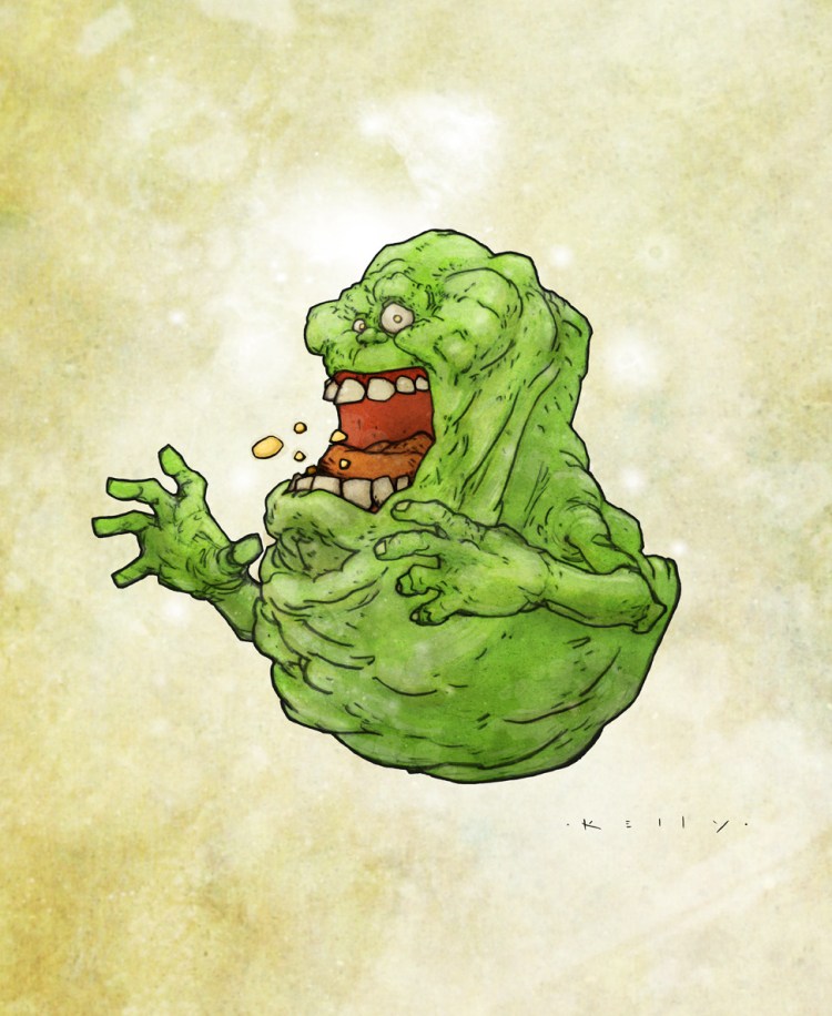 Check out this top notch illustration of everyone’s favorite fictional green friendly ghost Slimer by Tim Kelly! I want this on a shirt!