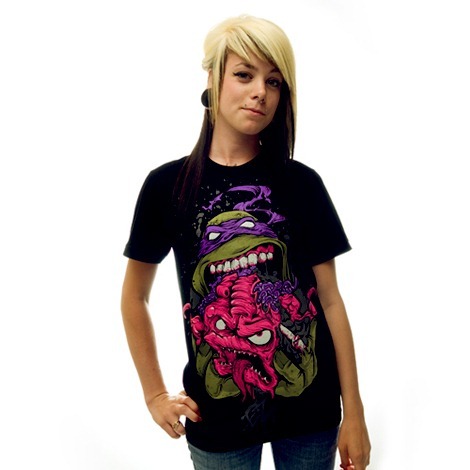 Donatello slipped into some more ooze… He is now a zombie! He is also feasting on some Krang brain. This shirt is radical!