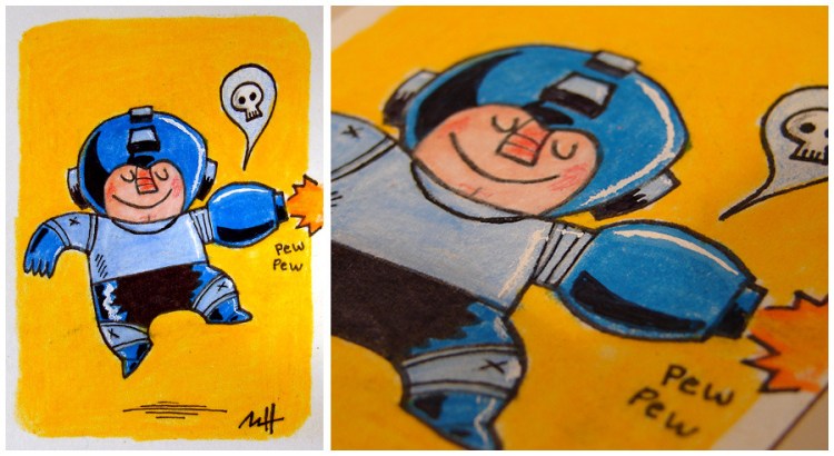 Mega Man’s blaster is Pew Pewing death while the Mega Man himself dances a jig. Matt Kaufenberg, the artist, has an amazing portfolio. Take a look!
