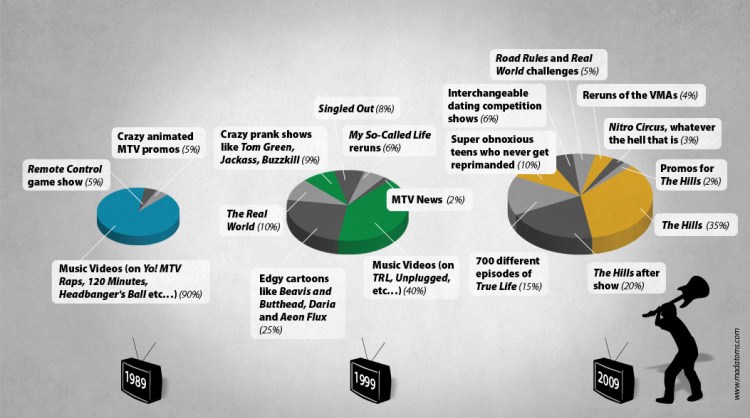 This is a perfect time-line for showing how my (back in the day) favorite station, Mtv, turned into a gargantuous pile of fly infested… well… you know…