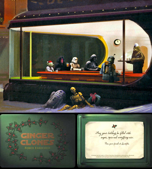 Check out the 33 2009 Lucasfilm holiday greeting cards at the @StarWars website. They were distributed to employees for sending out to corporate friends and partners. The Ginger Clones tin packaging is awesome.