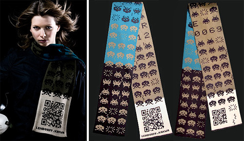 This is pretty much the coolest scarf ever! Space Invaders AND a special QR-code sewn in. Too bad you can’t have your own personal BlackBerry QR-code. That would be amazing!