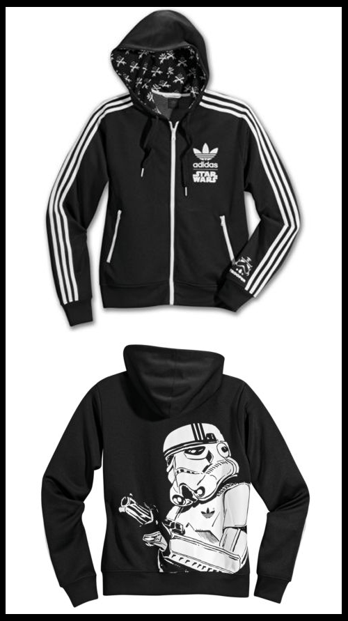 The Stormtrooper Hooded Track Top is my favorite piece of clothing from Adidas’ new Star Wars collection. I would wear the hell out of this.