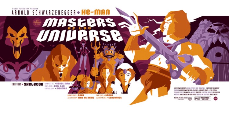 Awesome He-Man movie poster by Tom Whalen! Arnold Schwarzenegger as He-Man is just perfect!