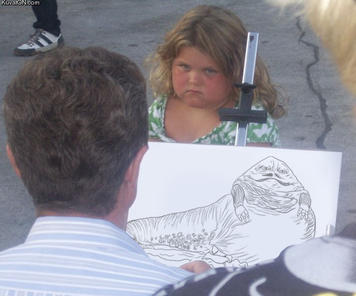 Here is the original photo of the man’s caricature drawing: Jabba Wabba?