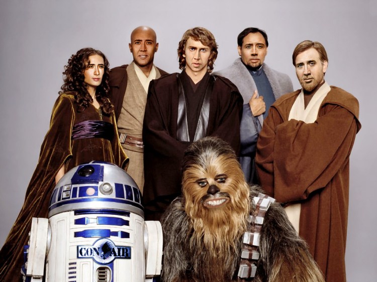 This is my latest submission to the Nic Cage as Everyone blog. I started off just changing Anakin, but is didn’t seem to fit. Now you get Star Wars Cage Rampage! Let me if I should change something up. Also, click the image to enlarge. Thanks! 🙂