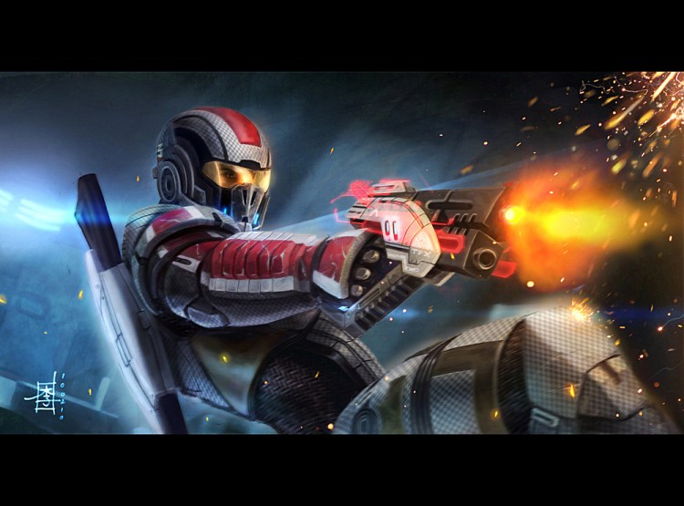 Commander Shepard holds nothing back in the heat of battle. Neither did MarC when he created this Mass Effect 2 fan art. He really portrayed the amazingness of the actual game.