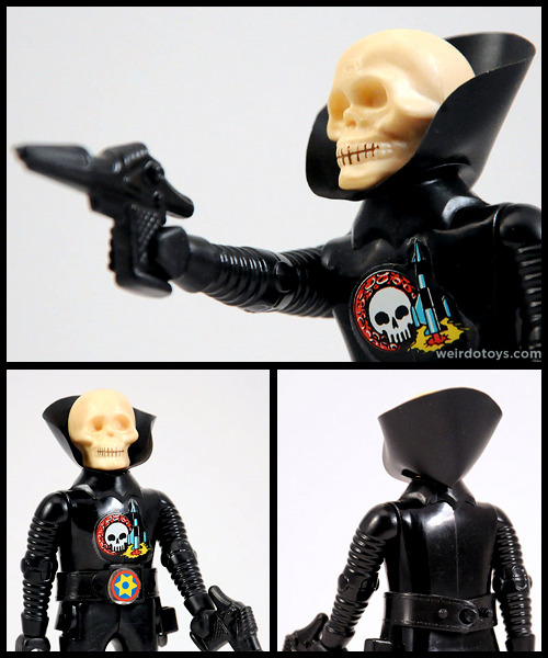 Meet the Super Diabolic villain named Spector. He seems to be a hybrid of Darth Vader and Ghost Rider. How cool is a skull head with a kick ass leather space suit?