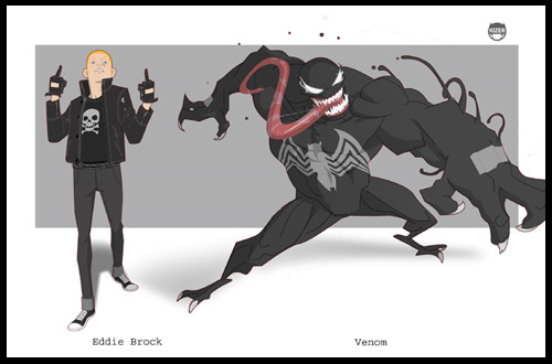 Eddie Brock is a wild ass punk and his alter ego, Venom, is no different. Coran Stone did it right with this illustration of his. I really like his mixture of the original Eddie with The Ultimates version.