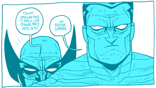 This is a very interesting situation. I never really had a thought on what the metal beast Colossus would smell like, but now I sorta do… Pennies do seem like the logical guess. Maybe battery acid?