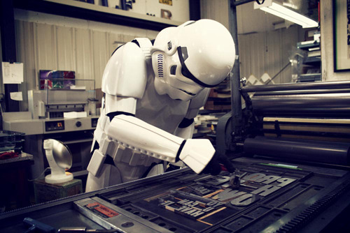Storm Trooper Using a Letterpress by Tim Fendley (Twitpic)
