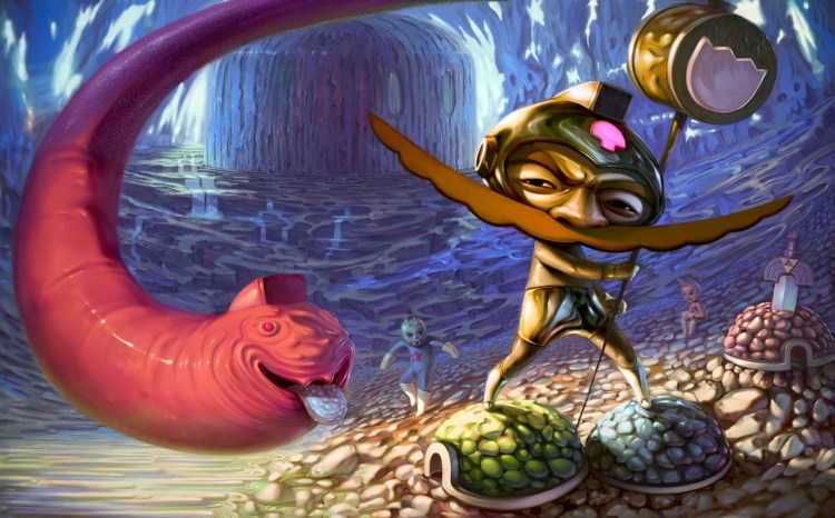 It looks as if Mario is going undercover in the far depths of earth. Fell (@NationPoo) put together quite a scenario here. Our hero, Mario, is trying to pull off his disguise as Mega Man, but I think the mustache is blowing his cover. Will he be able to destroy the goofball worm and recover the Master Sword? Tune in next time…