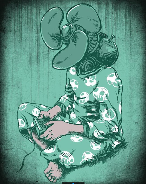 Fan Boy shirt is pure genius! Actually, this might not be a bad idea… I do sweat when I’m immersed in online battle over Xbox Live. Why not just turn my planetoid cranium into an actual fan. Yes!