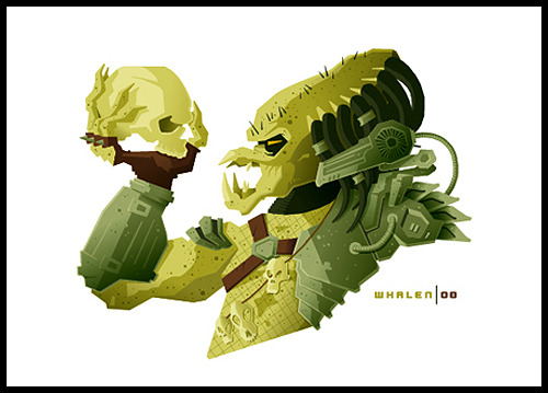 Welcome to the Tumblr neighborhood Tom Whalen (@strongstufftom)! This actually works out very well. It is still PREDATHURSDAY and Tom is a fan of the Predator films. So, here is a piece he did a while back. Predator acting out a scene from Hamlet. 🙂