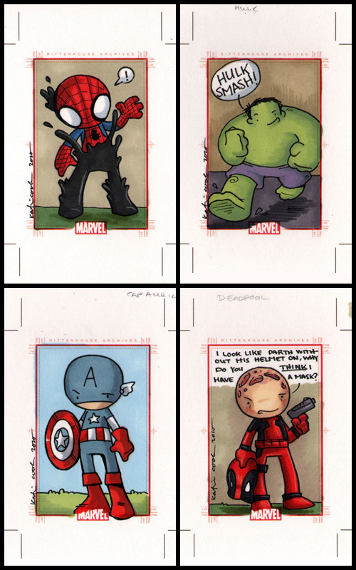 Marvel’s 70th anniversary Sketch Cards by Katie Cook (deviantART) (LiveJournal) (Facebook) (Twitter)