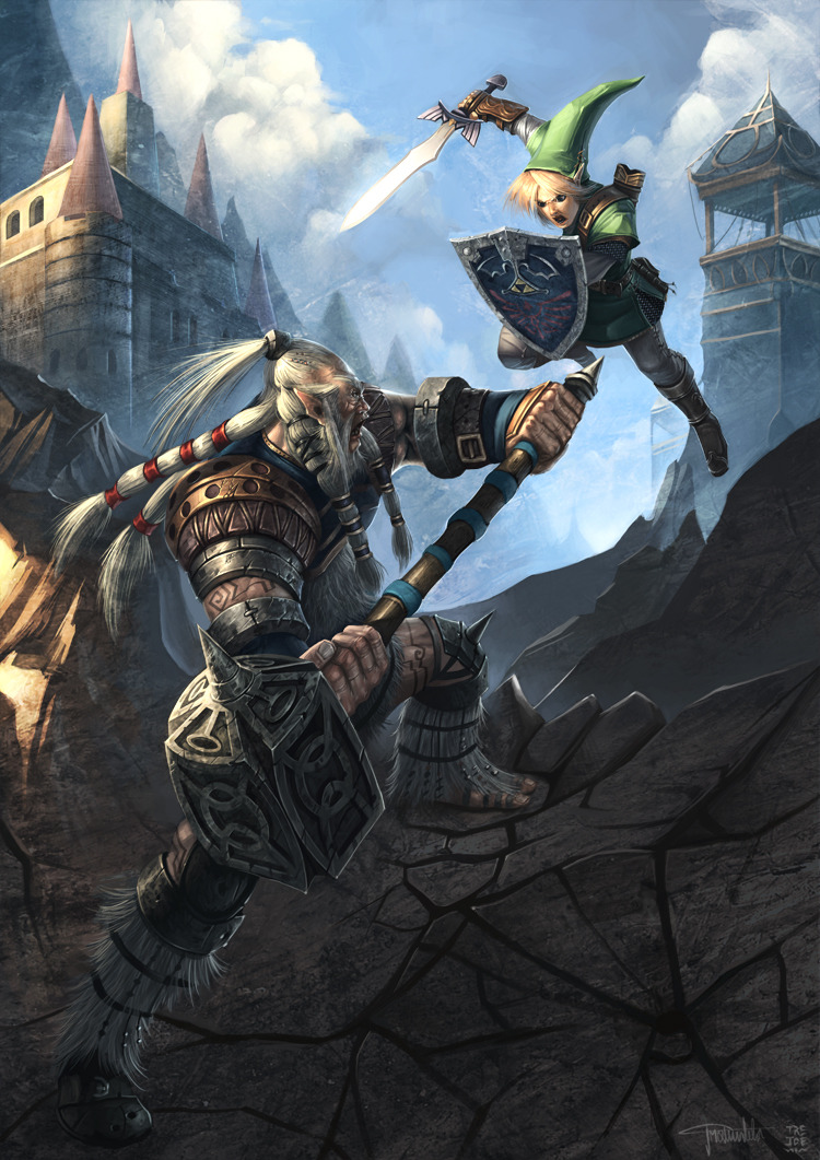 Link could care less about the size of his opponent. As long as he gets his daily chicken kicking and rupee snatching out of the way, he is ready to annihilate anyone who crosses him. There is a whole lot of ass kicking going on in this beautiful piece. Give’em hell Link!