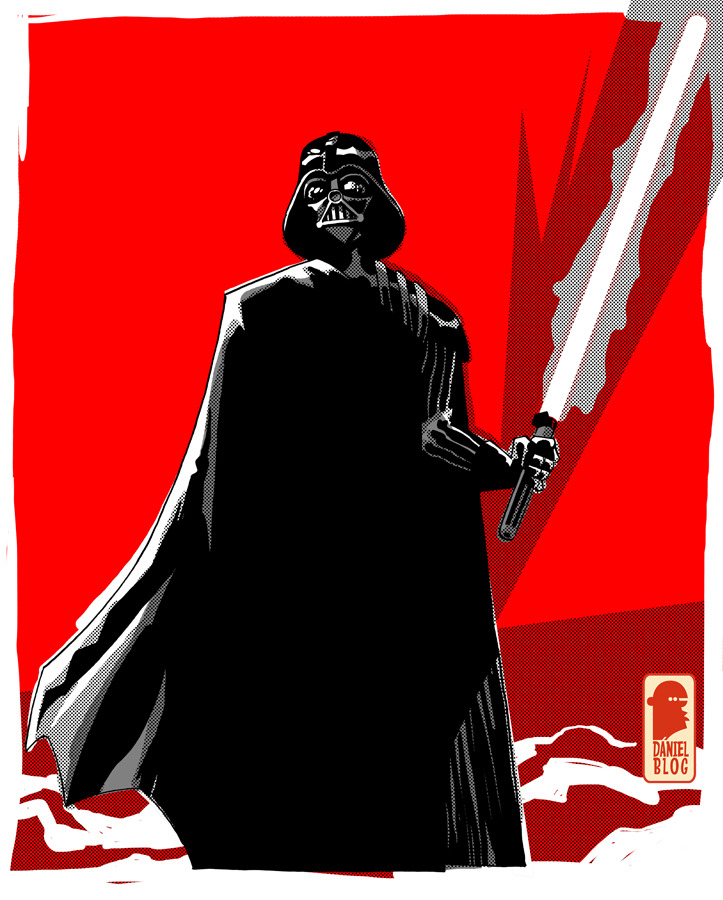 Darth Vader is ready for some Jedi scum to challenge his greatness. Even the simplest form of the Dark Lord gives off a kick ass vibe. I love the style of Nelson Dániel. Look through his Blog for more killer pieces like this.