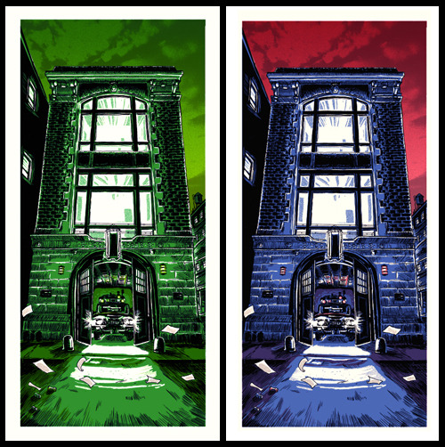 Who you gonna call? Tim Doyle! I hope these amazing Ghostbuster posters are up for public sale soon. Tim runs a website called Nakatomi Inc. to put out a lot of his printed work to others. It looks like we will have to wait only a little bit longer to see the prints for sale to us. It is $30 for the regular and $50 for the kick ass slime glow.