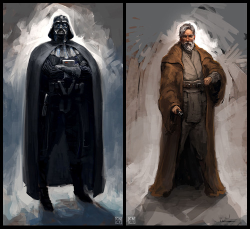 What a match up! The ultimate powerhouse, Darth Vader, right next to the noble and wise mentor, Obi Wan Kenobi. It doesn’t get much better than this… What a killer digital painting!