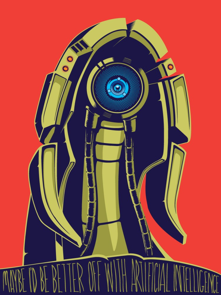 The Geth are a nasty foe to take on within the Mass Effect Universe. This illustration by Adam Sidwell, however, brings the hunk of junk droid into a whole new light. The color choices and mad illustration skill make the Geth look like a bunch of kick ass party animals. Woohoo! This is a great piece of art. Did I mention… I really love Mass Effect.