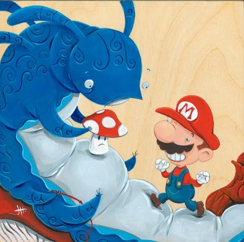 Awesome 8" x 8" Mario Tribute piece done with Acrylic on wood by Justin Hillgrove! If you a few extra dollars under your mattress, you can grab it up for yourself. Only $250! 😉
