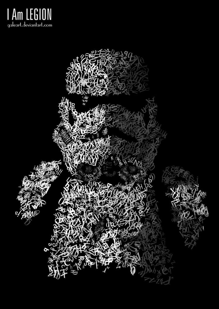 Storm Trooper typography at its finest! I really enjoy the mysterious/angry look of the Trooper and the use of shadows from simple letter forms. This piece reminds me of the good old days…