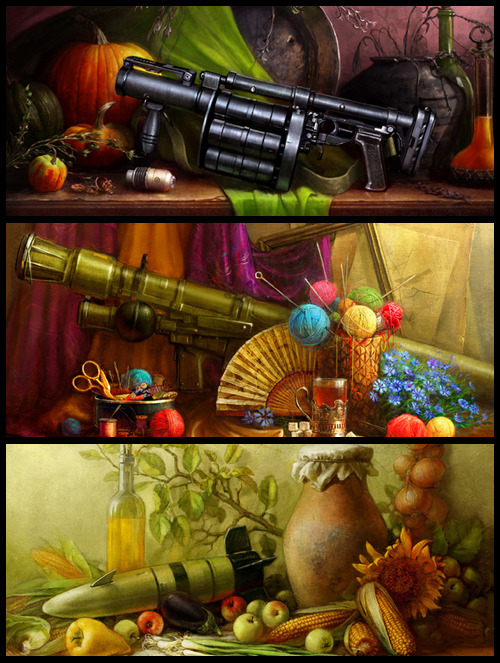Such elegant weapons of death and destruction! The talented people at Geliografic mixed up a bit of the Russian originality with European delicacy and Oriental color. This would be an explosive Art class in college. Click Click BOOM!
