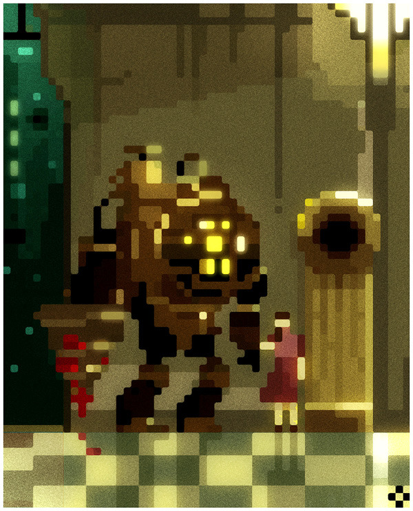 Pixelated BioShock fan art by Patricio Betteo for your viewing pleasure! I wouldn’t mind actually seeing this as a side scrolling game.
