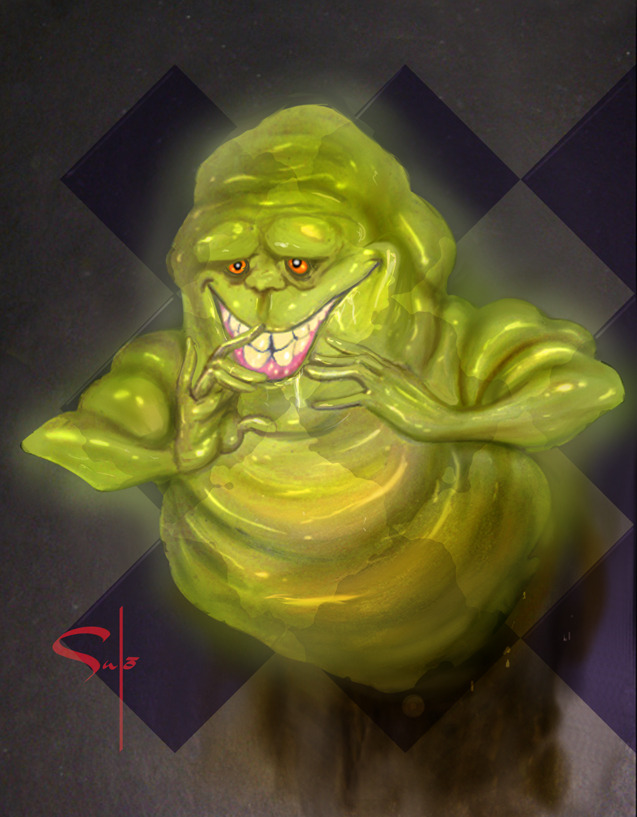 Slimer, from the original Ghostbusters movie, was my favorite version of the lovable blob of pure ectoplasm. This illustration by sal0 really shows off the devilsh prankster in his true form.