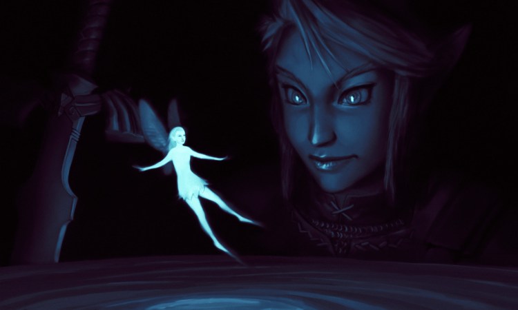 Navi shares a dance with Link in this beautiful work of art by Ryan Hoke. The lighting is phenomenal!