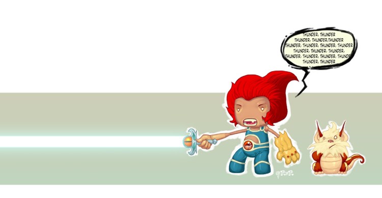 Lion-O likes to show off the size of his sword when he is bored. Snarf gets a little tired of this childish act. I think it is quite hilarious!
