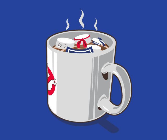 It seems that the Stay Puft Marshmallow Man has been reduced to nothing more than a delicious addition to my cup of hot chocolate. Kick ass design by David Staffell!