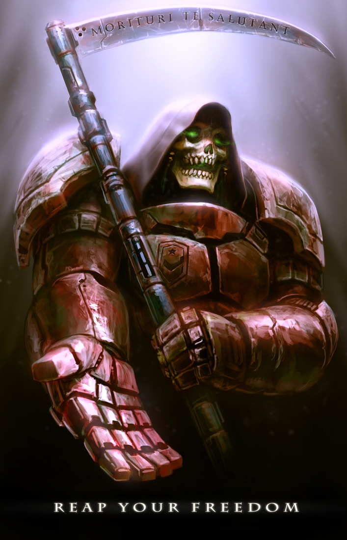 Do your part when StarCraft II arrives and join the Terran Reapers! This propaganda poster by Jimmy Xu that was created for the StarCraft II Propaganda Contest.