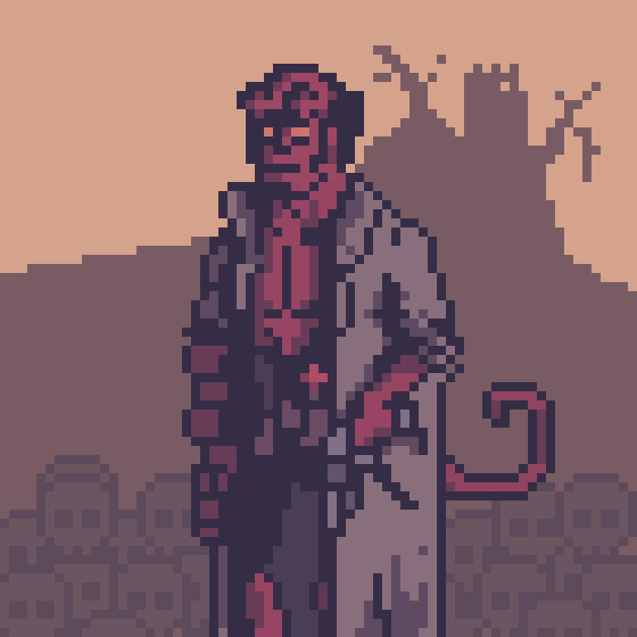 José Contreras creates a pixelated version of Hellboy and makes him look completely bad ass.