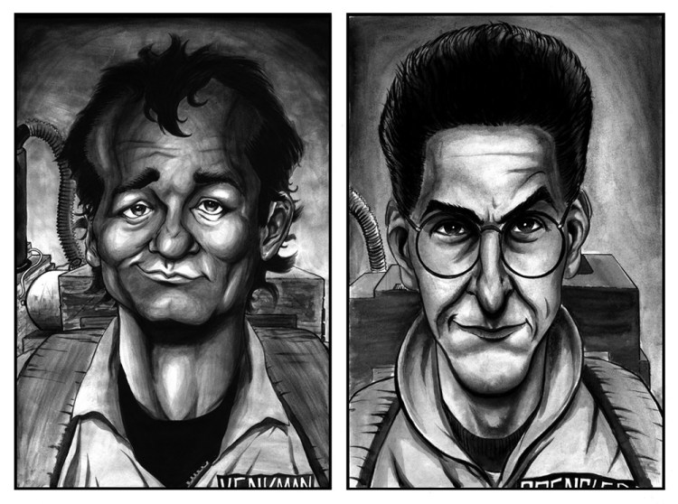 Dr. Venkman and Spengler get inkwash slimed by Jason Wright in these two amazing portraits. I’m looking forward to seeing him create the rest of the gang.