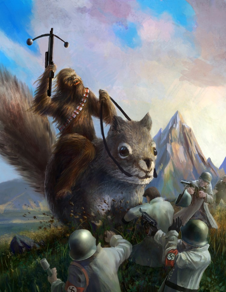 “Chewbacca ain’t in the prisoner-takin’ business; he in the killin’ Nazi business. And young padawan, business is a-BOOMIN’!”