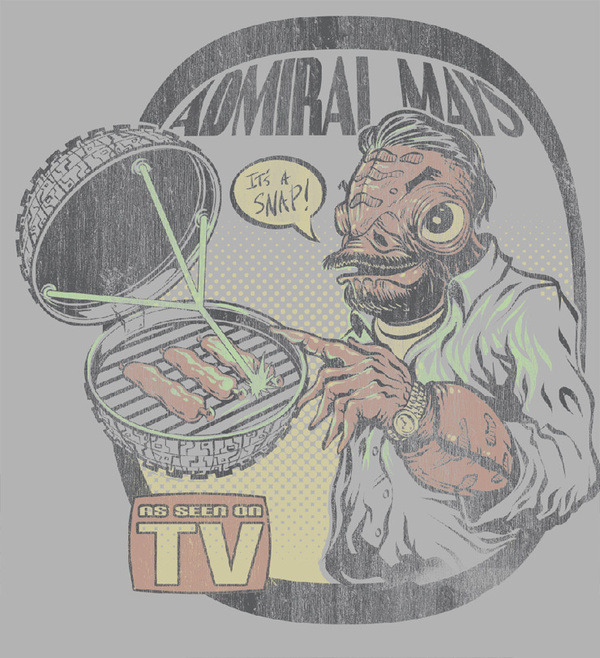 Jeremy Packer took Billy Mays and merged him with Admiral Ackbar to form, Admiral Mays! This is an excellent tribute and design! I need a Death Star grill, stat!