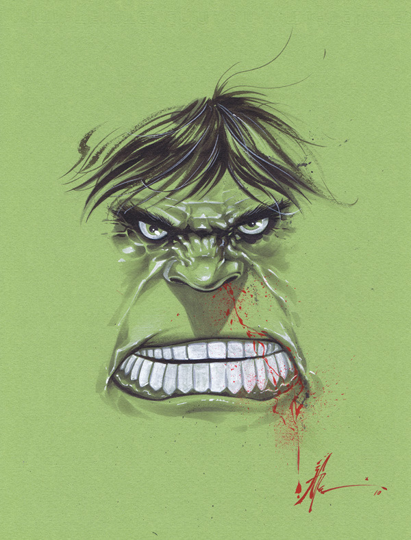 For a warm up illustration, this is SMASHTASTIC! Hulk’s nose is bleeding and someone is about to pay the price.