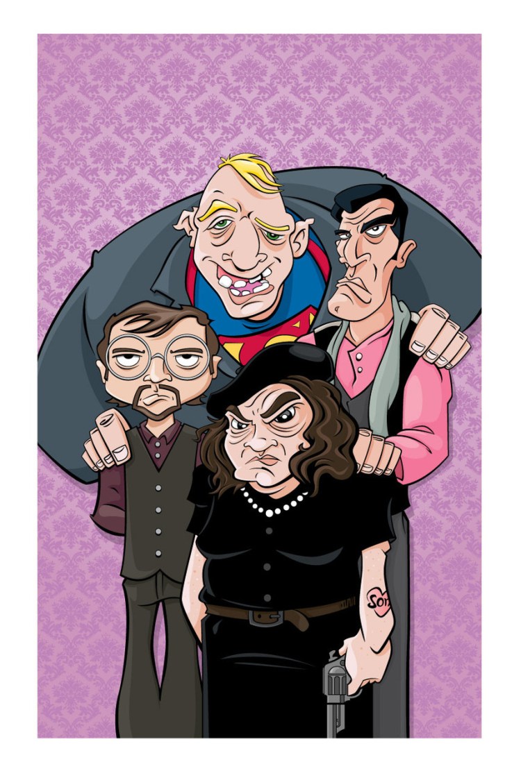 The Fratelli Family got together for a happy family photo in this awesome illustration by Matt Luxich. This is one of three pieces that Matt submitted for the Autumn Society’s Gallery 1988 3G show. Sloth’s outfit is perfect.