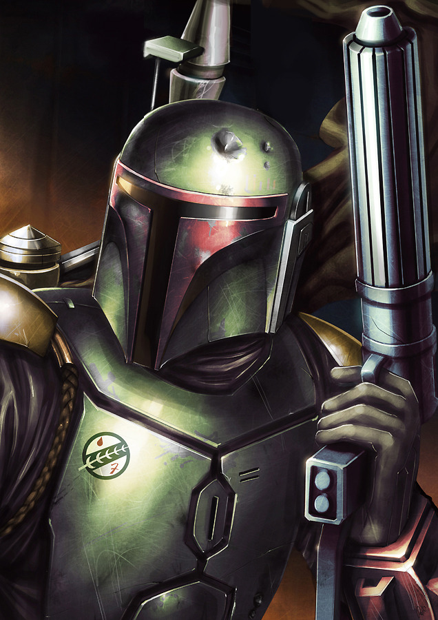 Boba Fett gets ready to take down his prey in this kick ass illustration by Priscilla Tramontano. She never fails to amaze.