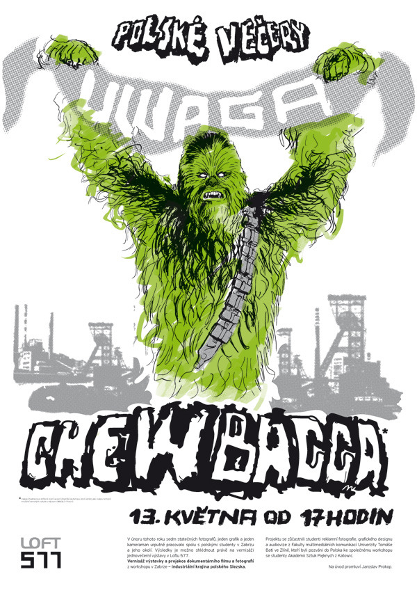 Poster design utilizing the power of Chewbacca to grab your attention. A green Hulkified Chewie at that!